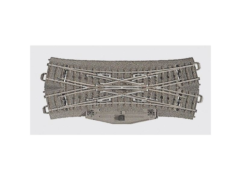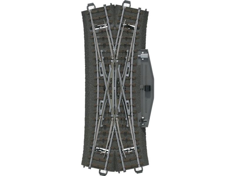 188.3 mm / 7-13/32" / 24.3°. Comes with electric mechanism and lighted double slip switch lantern. Can be retrofitted with 74461 digital decoder.