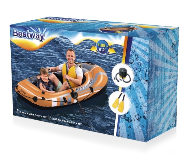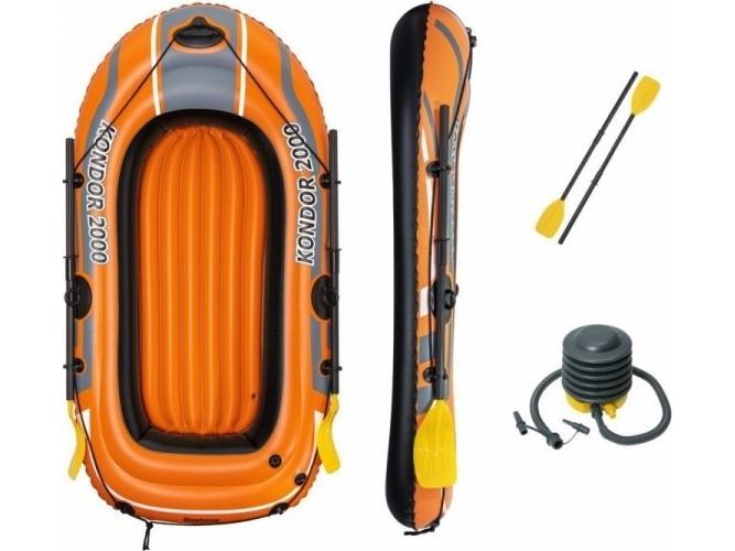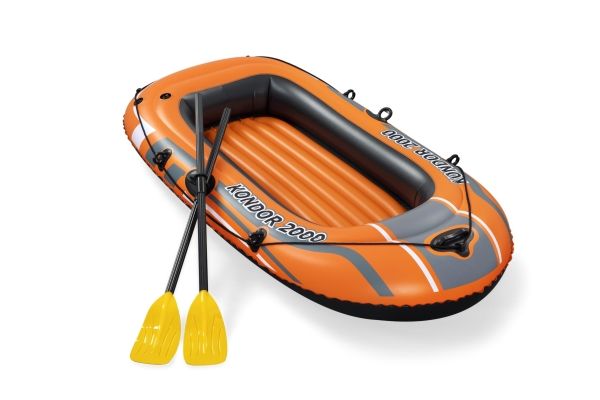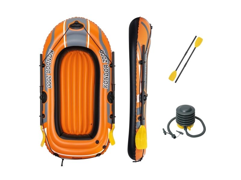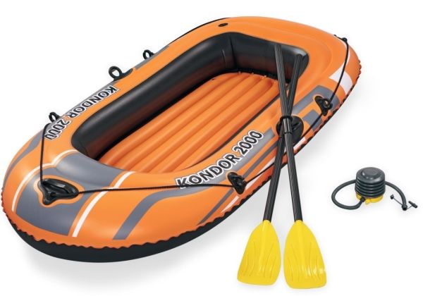 Content: One boat, one pair of oars, one foot pump, repair patch