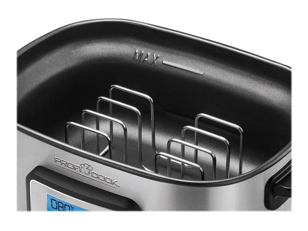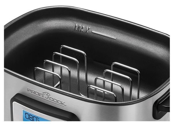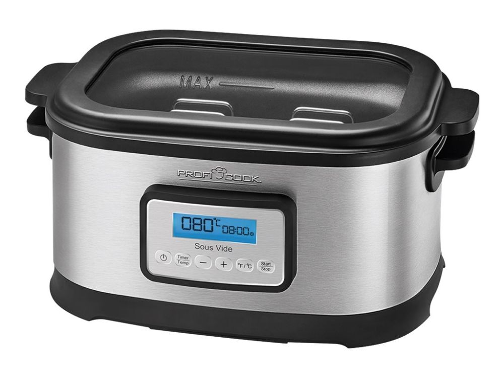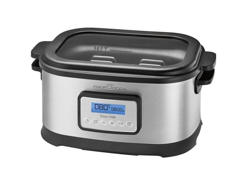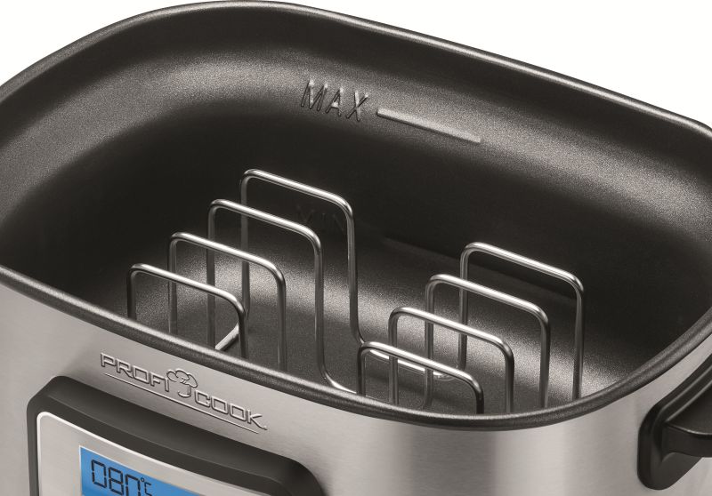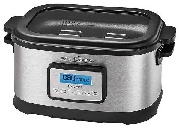 • Sous vide kar til vakuumtilberedning, i rustfrit stål • Styr med præcision temperaturen (0,5 graders intervaller, instilling mellem 45-90 grader) • Kan rumme 8,0 liter, gennemsigtigt låg • 72 timers tidsindstilling • 520 W, 230 V, 50 Hz. Tang og stålrist medfølger