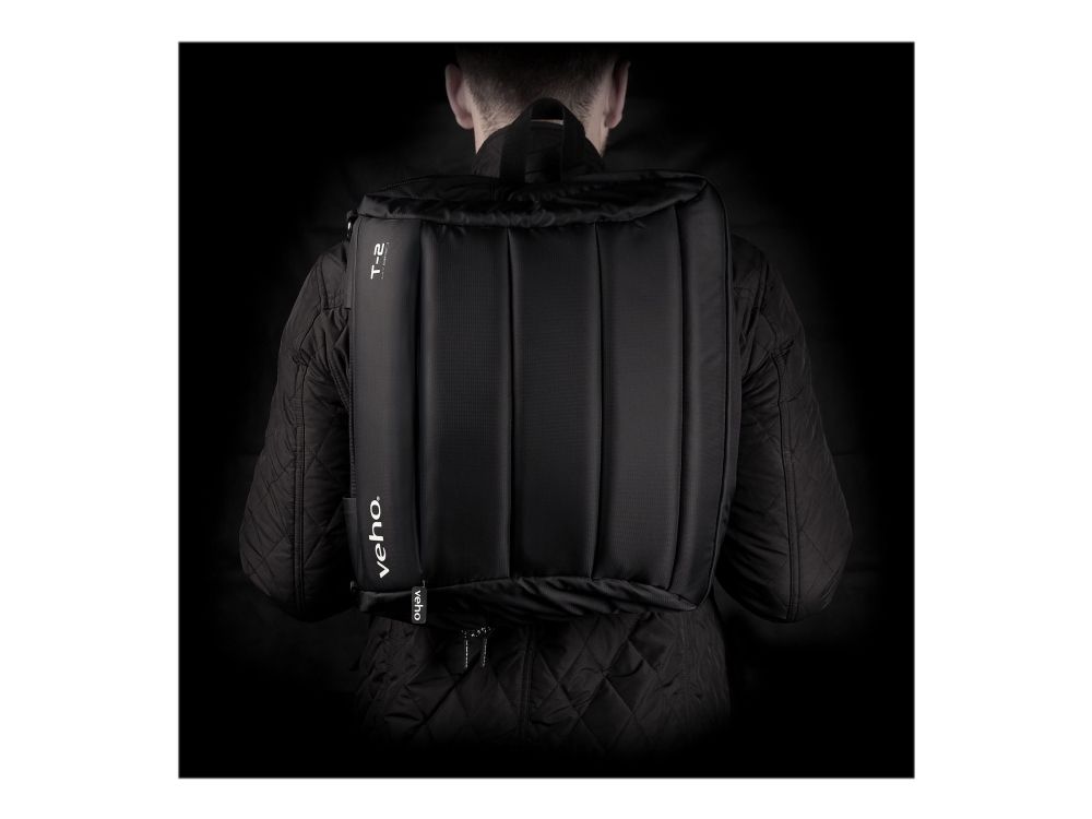 This Veho T2 hybrid super padded laptop bag incorporates different handy carrying possibilities. It is designed with the opportunity to either carry as a traditional laptop bag with a handle or shoulder strap as well as rucksack straps to convert the T2 into a rucksack. The rucksack straps conveniently tuck away when the T2 is used as a conventional bag. The T2 also has the conventional sleeve to slot over a carry-on flight bag handles for easy transportation through airports. The T2 offers your IT equipment ultimate protection with a super padded exterior and with inner padded compartments for a large laptop and tablet. Even when fully loaded with tech the T2 offers additional space for notepads and other business essentials both in the main compartment and the additional outer zipped compartment.