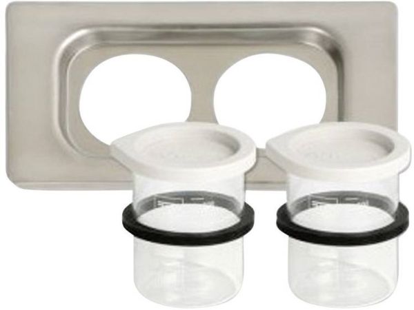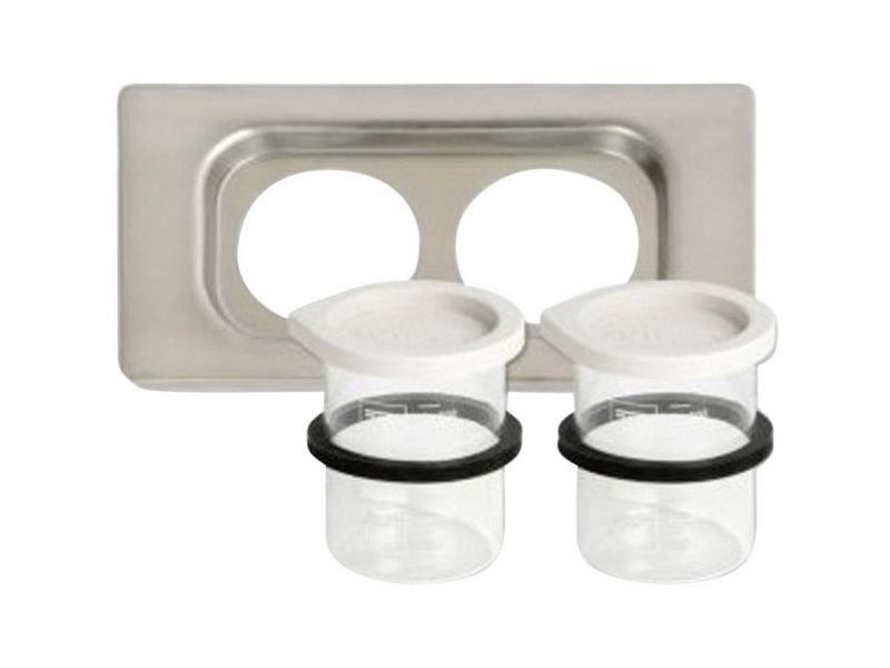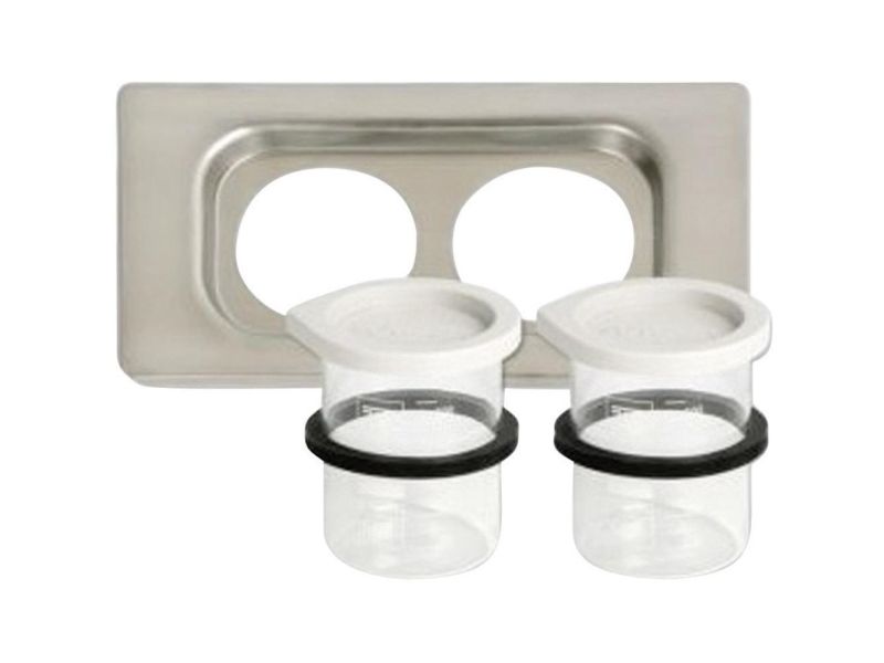 Specialdækslet af ædelstål med 2 glasbægre (inkl. dæksel og gummiring) til Emmi 40 til skånsom rengøring og til let og enkel henlæggelse og opsamling af mindre genstande som fjedre, dyser, skruer, kanyler og så videre. Samtidigt kan der arbejdes med forskellige væsker.