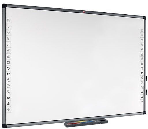 Avtek TT-BOARD interactive whiteboard stands out by combining exceptionally wide functionality with an accessible price. Common parts in this board are precise IR touch technology, aluminum frame and shortcut bars on both sides that give a quick access to key software functions. AVTek TT-BOARD 80 Pro is distinguished by 10 touch points, interactive pen tray that allows user to easily change pen colors and ceramic PolyVision e3 surface that ensures durability and a dry-erase ability, while displayed image is kept with a very high quality.