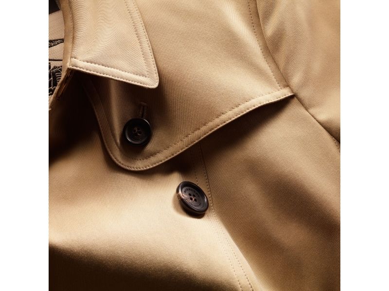 - The bottle reflects iconic details of the trench coat: a bold horn-finish cap echoes its distinctive buttons and the hand-tied bow is English-woven gabardine, honouring the fabric invented by Thomas Burberry over 100 years ago.