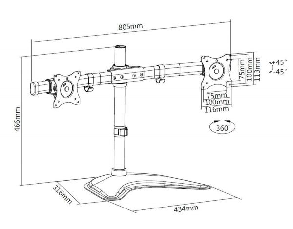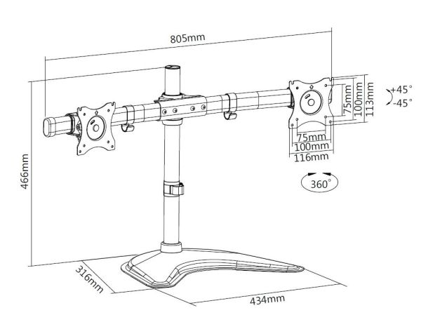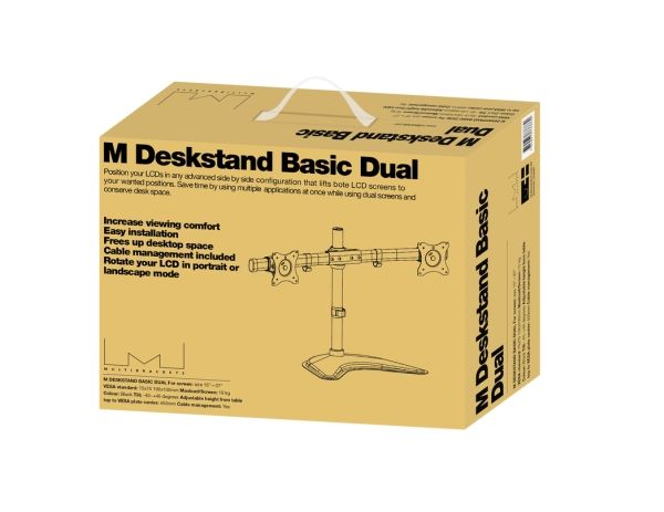 The M Deskstand Basic Dual is your new office partner giving great flexibility and ease of adjustment and works with almost all LCD screens on the market supporting VESA standards of 75/100 mm holding screen weight up to 8 kg.