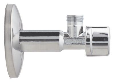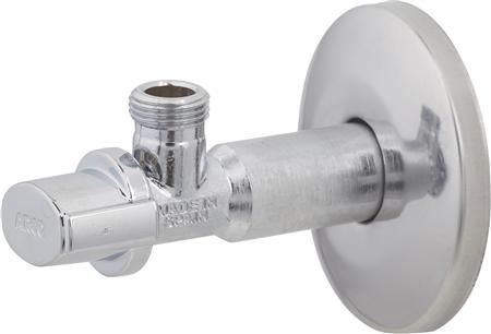 BROEN Arcofix stopventil lang model nippel/nippel 1/2" x 3/8" i krom med Ø70mm roset. Leveres uden omløber til 10mm kobberrør #744524033