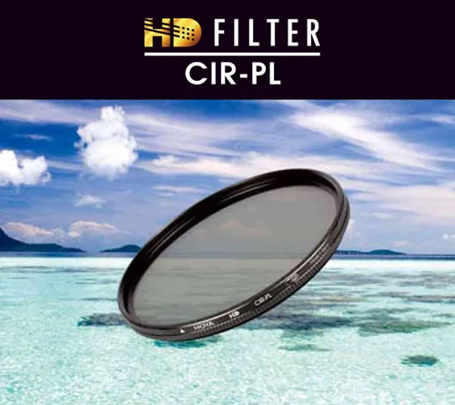 HD POLARIZING FILM\n? High Transparency & High Durability UV Absorbing Film\n? 25% Greater Light Transmission than Standard Polarizing Film\n\nHD COATING\n? 8-layer Anti-Reflective Multi-Coating\n? Water & Oil Repellent, Scratch & Stain Resistant\n\nHD FRAME\n? Wide-Angle Lens Compatible Ultra Thin Frame\n? Glass Mounted with High Pressure Press Technology\n\nColor and contrast enhancement\nLight rays which are reflected by any surface can become polarised so polarising filters are used to select which light rays enter your camera lens. CIR-PL filters allow you to remove unwanted reflections from non-metallic surfaces such as water, glass etc. They also enable colors to become more saturated and appear clearer with better contrast. This effect is often used to increase the contrast and saturation in blue skies and white clouds. HOYA's polarising filters do not affect the overall color balance of a shot.