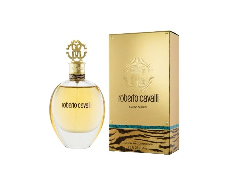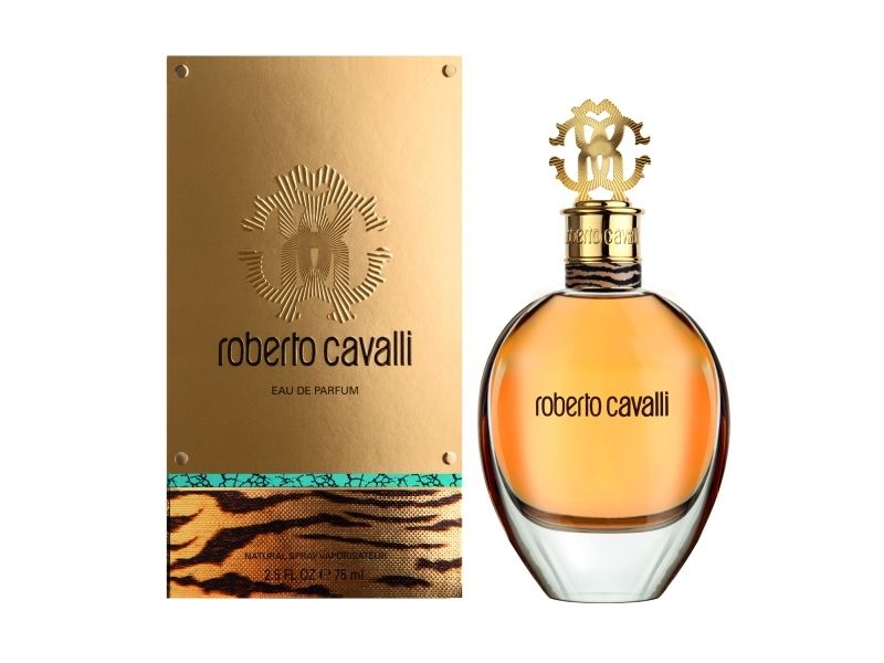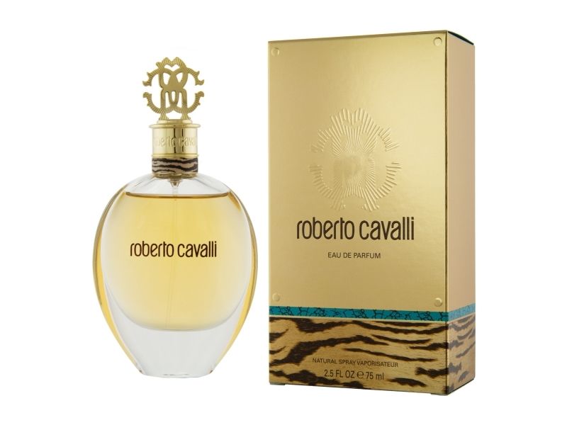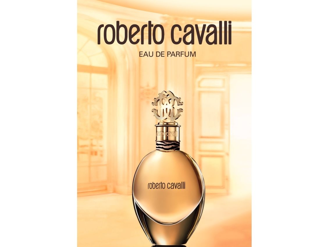 The artistic line of the Roberto Cavalli perfume bottle recalls the voluptuous curves of a sensual woman.