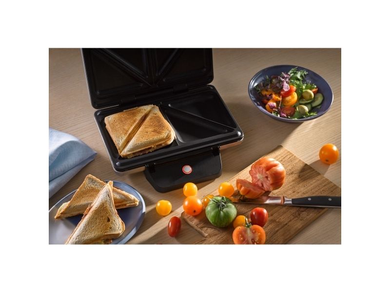 Plads til 2 sandwiches i enhver størrelse - fra standard- og XXL-toastskiver (sandwich størrelse hver maks. 130 x 130 mm)