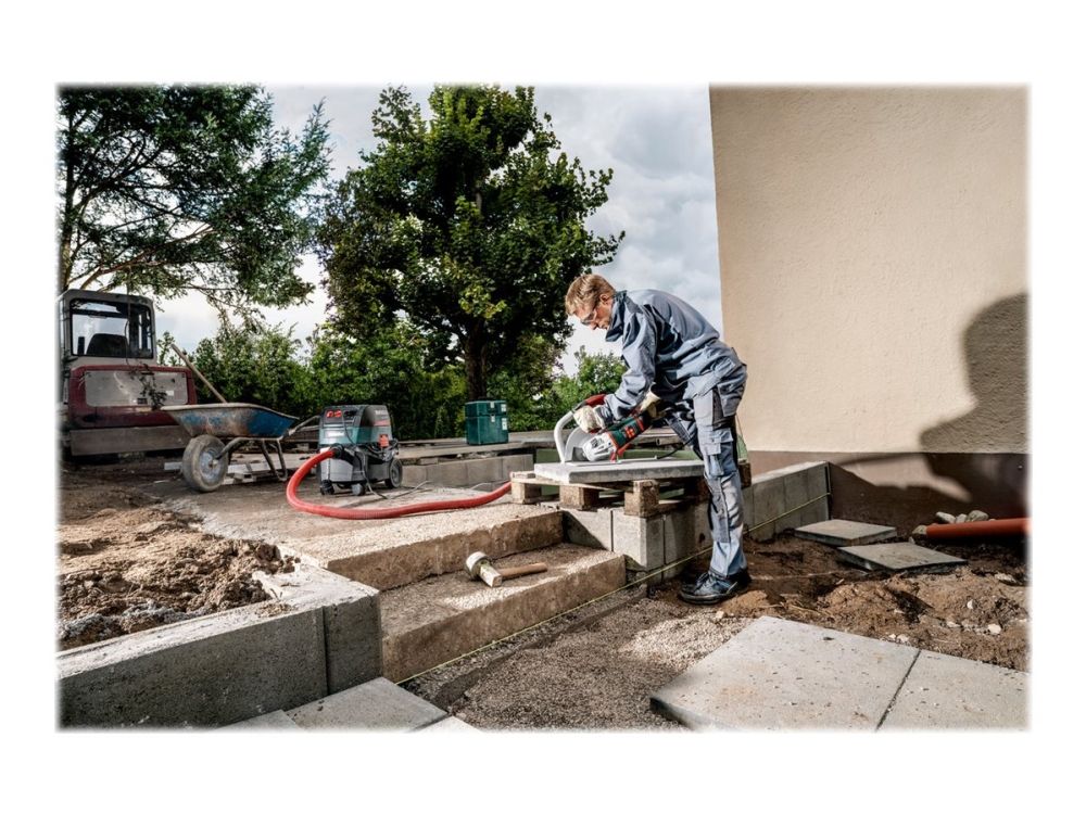 - Metabo Marathon motor with patented dust protection for long service life - Metabo safety switch prevents unintentional start-up - Starting current limitation prevents the actuation of the lock on start-up - Electronic safety shutdown: reduces kickback if the disc stops unexpectedly - for high user protection - Restart protection: prevents unintentional start-up after power supply interruption - LED signal for triggered restart protection or overheating - Metabo Quick for tool-free disc change by means of a quick-locking nut - Tool-free adjustable guard; twist-proof - Metabo VibraTech (MVT): integrated damping system and side handle to reduce vibrations in order to protect the user’s health - Side handle can be mounted at three positions - Swivelling main handle: high safety and better handling when cutting - Auto-stop carbon brushes to protect the motor