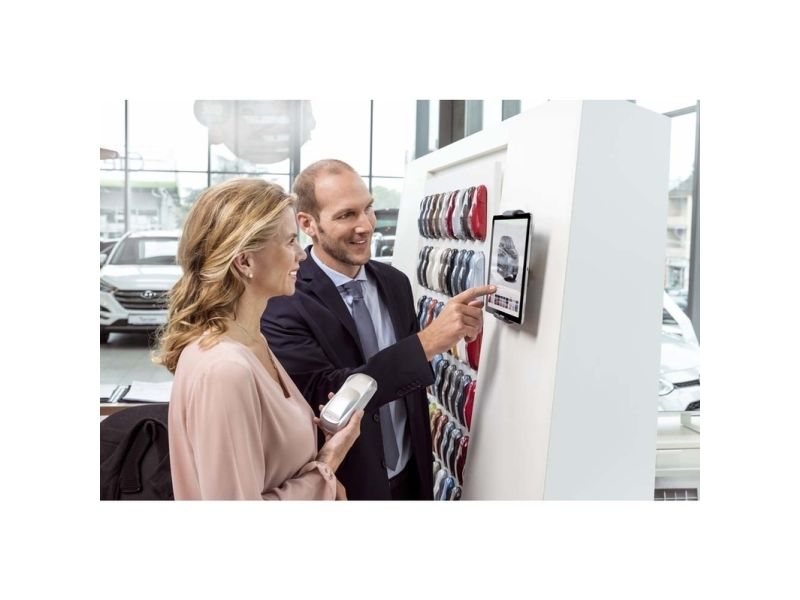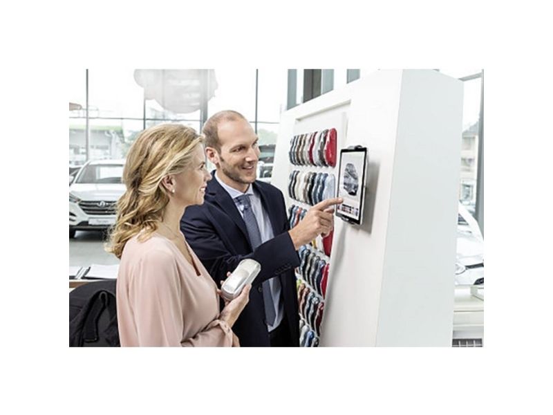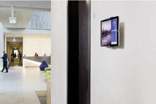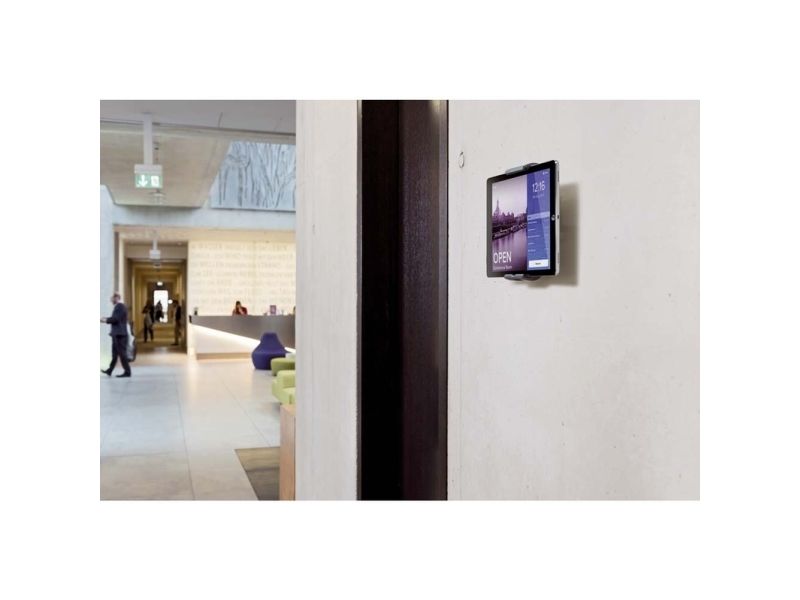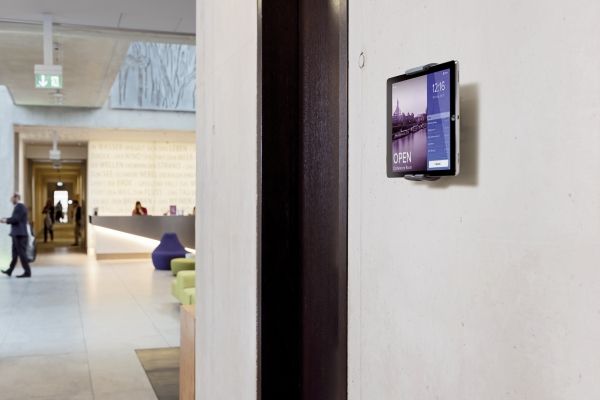 This wall-mounted tablet holder has been created for many different areas of application and supports the use of tablets for information purposes. These include trade fairs, office areas as well as sales and exhibition rooms. The holder's low-key design enables unobtrusive, flat wall mounting.