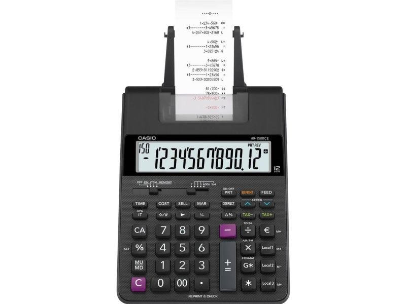 Casio HR 150 RCE utskrivende bordlommekalkulator, sort display (innstilling): 12, batteridrevet/nettdrevet (valgfritt), (B x H x D) 165 x 65 x 295 mm