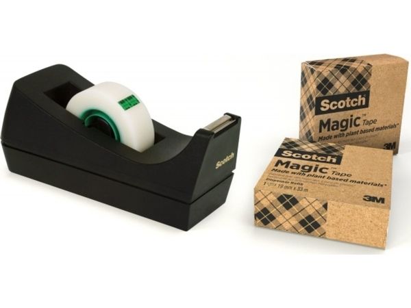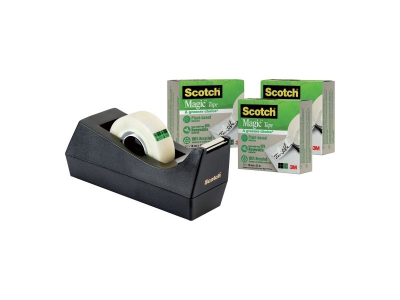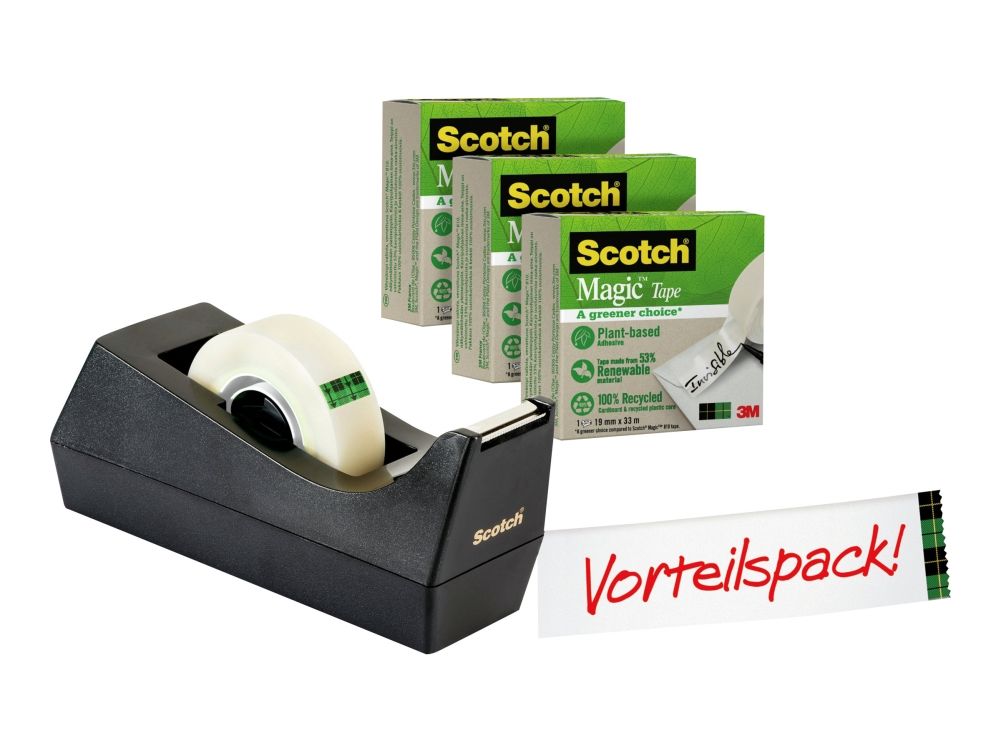 Scotch C38 + Scotch Magic 900 Greener Choice - Dispenser med kontortape (3 ruller) - skrivebord - 19 mm x 33 m - svart dispenser