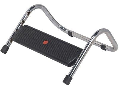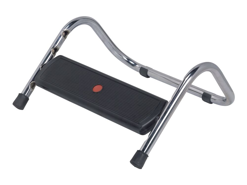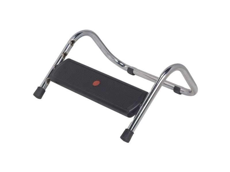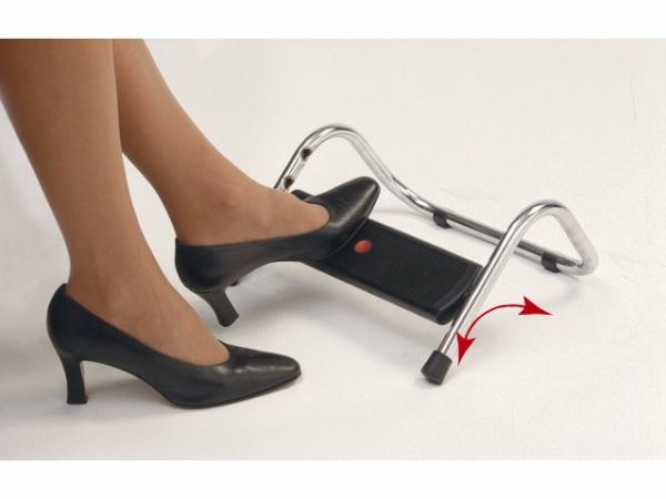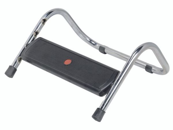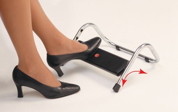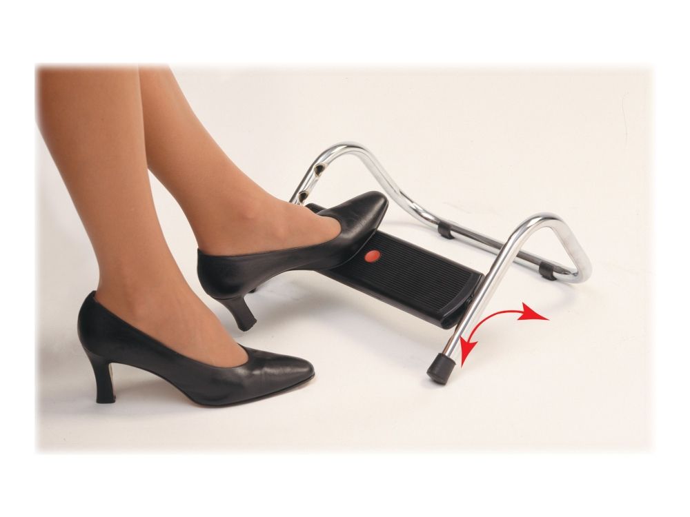 Fodstøtte med forkromet metalramme og sort polystyren støtte.