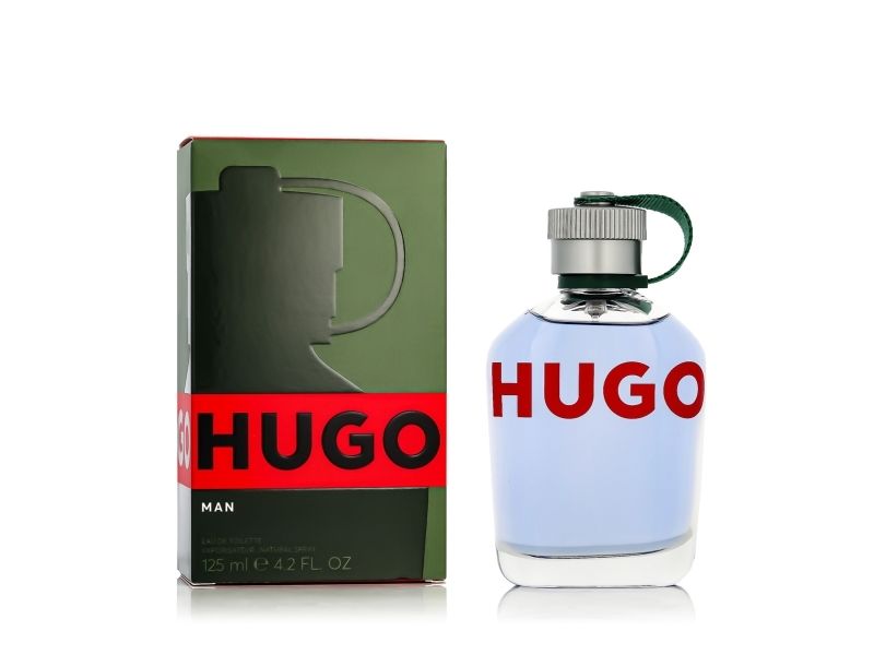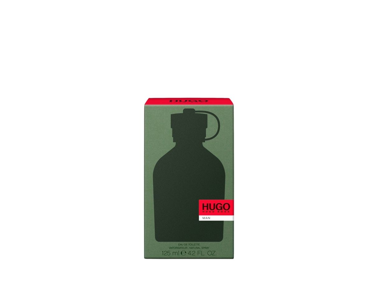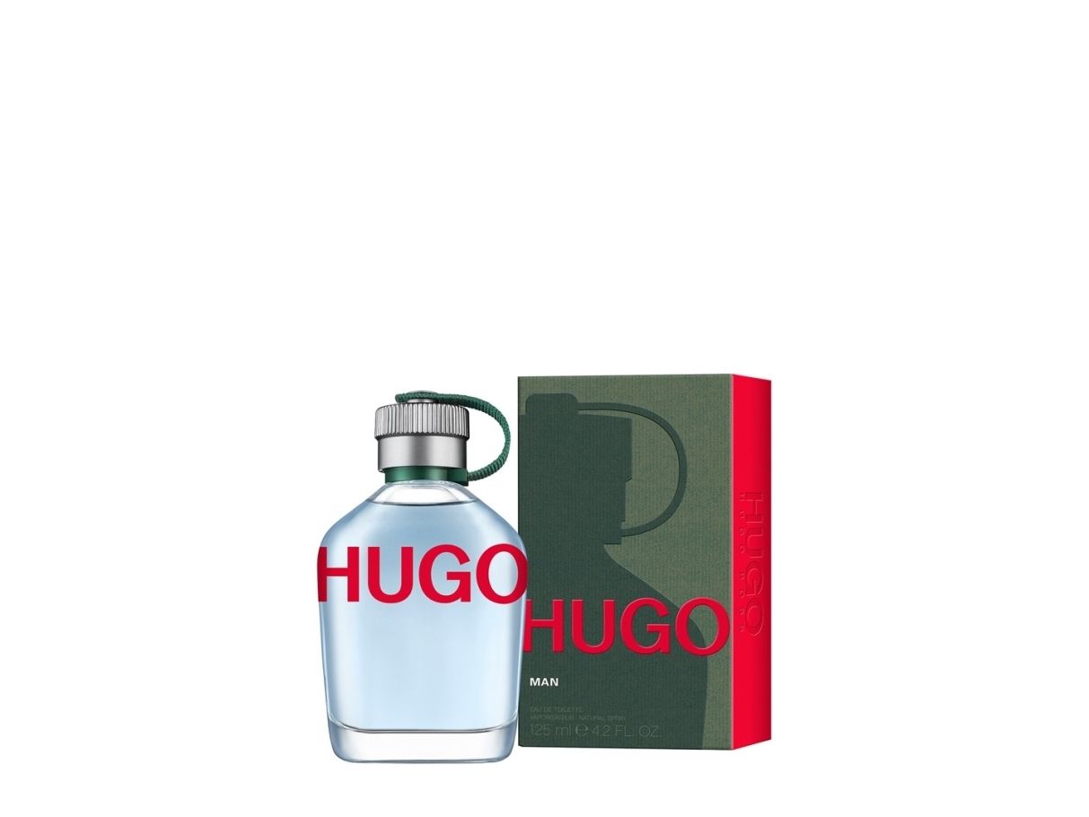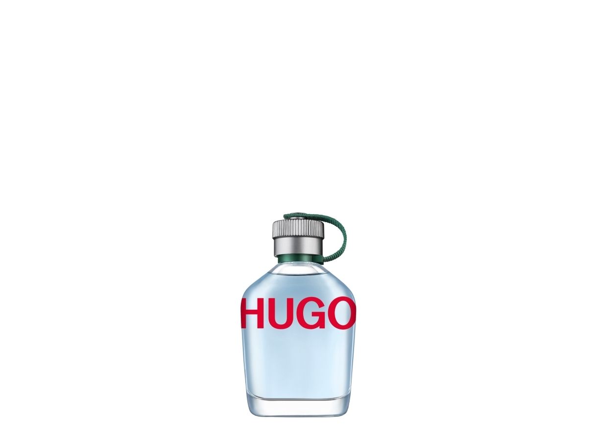 A 125ml bottle of HUGO Man eau de toilette. This modern fragrance is an energising hit of crisp green apple combined with smoky fir balsam and vibrant aromatic notes. Ideal for those with a free-spirited nature, HUGO Man is presented in a sleek flask with a bold logo.
