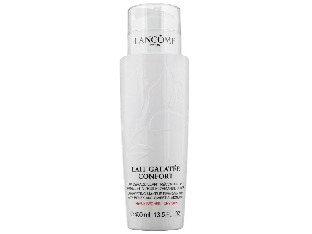 Lancome Cleansers Lait Galatee Confort Comforting Makeup Remover Milk Denne milde melken er spesielt utviklet for tørr hud og er beriket med honningmandelekstrakt og melkeproteiner. Melken etterlater huden hydrert og silkemyk bak den rike kremete melken gir en smidig og glatt hud uten rester. Svært egnet for tørr og kjedelig hud Bruk Påfør sminkefjerneren i ansiktet med lette bevegelser og fjern eventuelle produktrester med en serviett eller skyll ansiktet