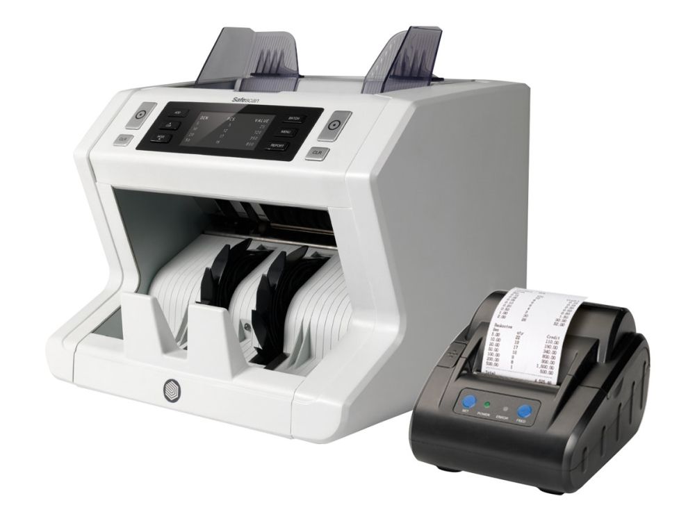 INSTANT, DETAILED CASH REPORTING Simply plug the sturdy, compact Safescan TP-230 into your 6155, 6185, 2665 or 2685 money counter and automatically print a detailed report on each denomination and the total sum counted. The ideal way to print hard copies for your records or fill out your daily cash report.
