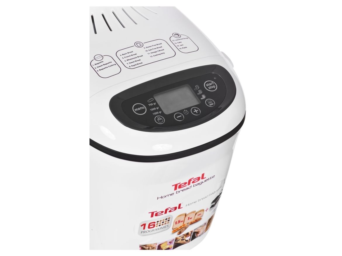 Tefal PF610138. Product colour: White, Maximum bread weight: 1.5 kg, Bread & dough making programs: Baguette dough, Cake dough. Power: 1600 W