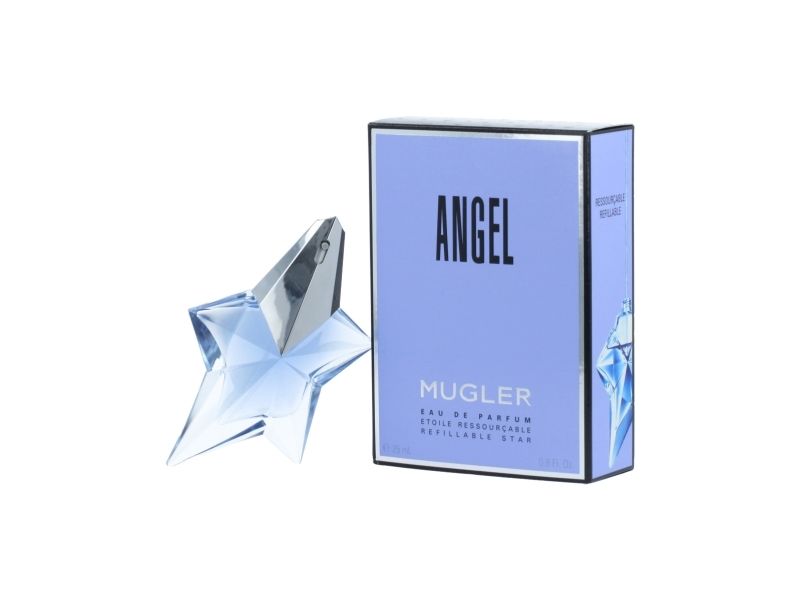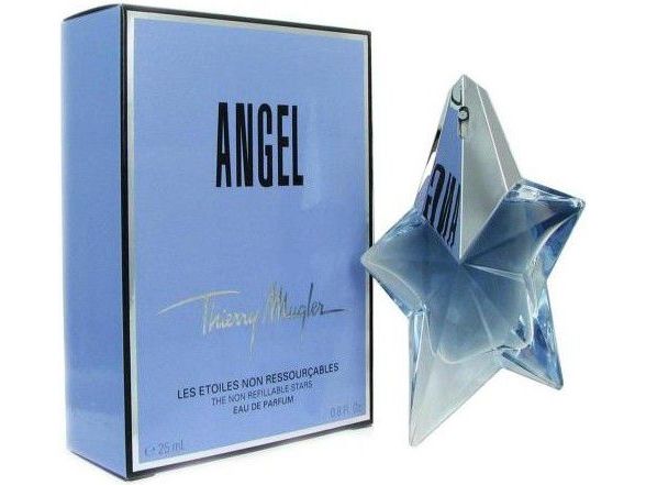 The Angel woman dares to live up to her dreams with her blue star as her guide. Confident and seductive, she fascinates those who cross her path. Between power and pleasure, she uses her ultra-femininity as a signature. Between heaven and earth, she makes her dreams a reality. Angel Eau de Parfum is the first Gourmand perfume in the world of fragrance.