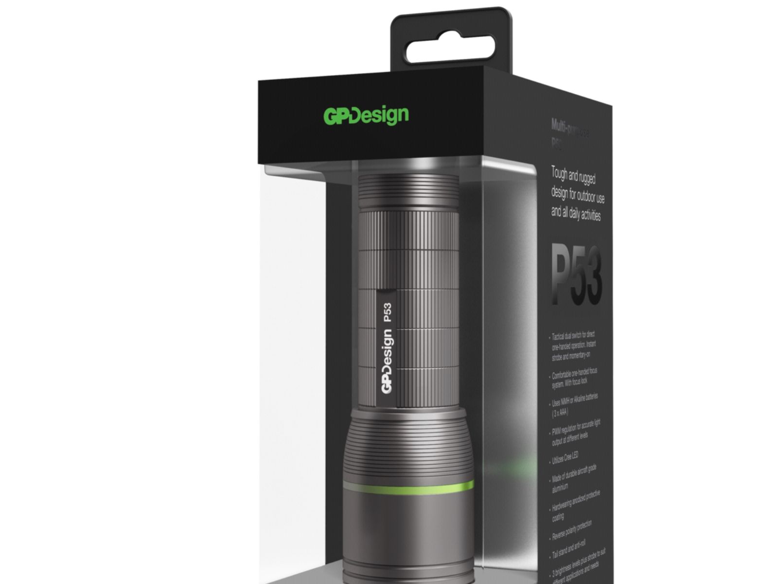 Design Flashlight, P53, incl. Bag Hand flashlight, Black,