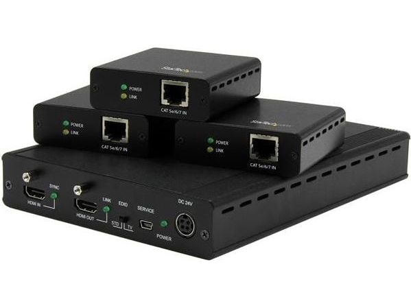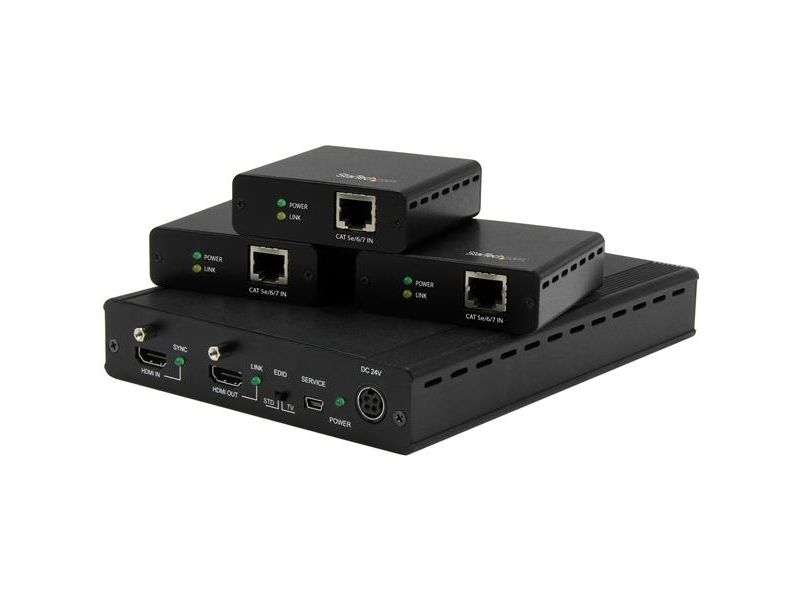 Startech 3 Way HDMI Splitter - HDBaseT Extender Kit w/ 3 Receivers - 1x3 HDMI over CAT5e / CAT6 Splitter - 3 Port HDBaseT HDMI Extender - Up to 4K (ST124HDBT) - video/lyd-forlenger