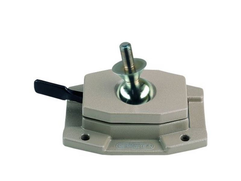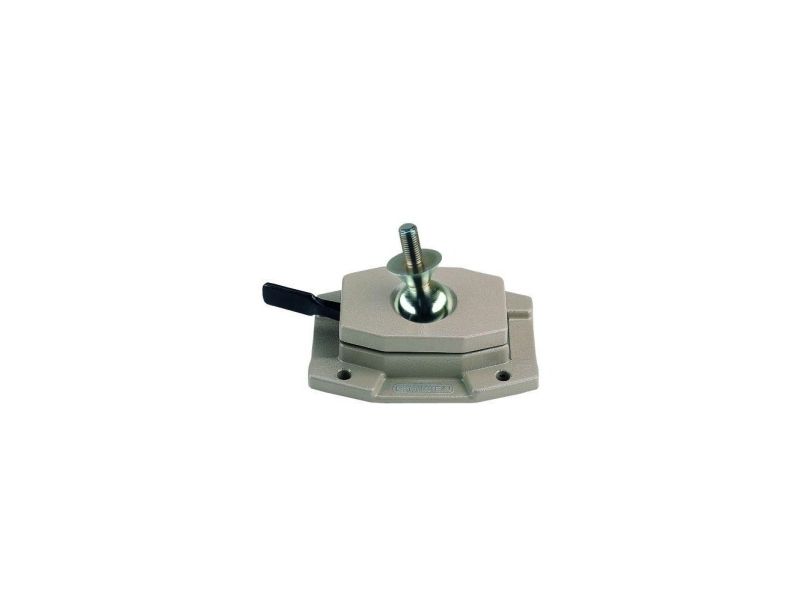 Spannfix fod til permanent montering, størrelsen af ​​bundpladen 150 x 105 mm, med kugleled og gevindtap M 12 x 1,5, montering Ø 40 mm, gevind 25 mm lange.
