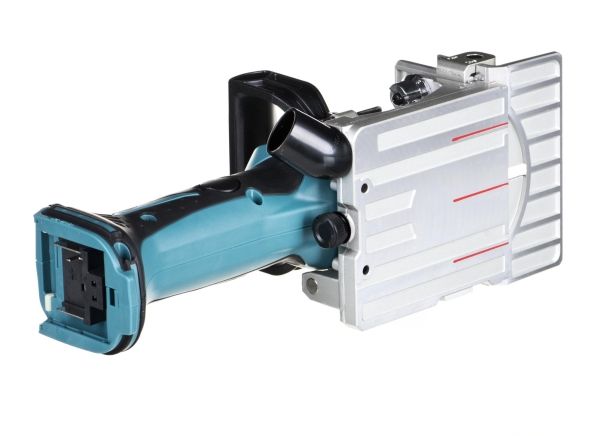 Model DPJ180 has been developed as a cordless plate joiner powered by 18V li-ion battery, featuring easy-to-grip slim motor housing.