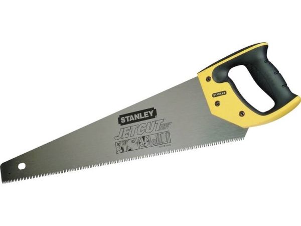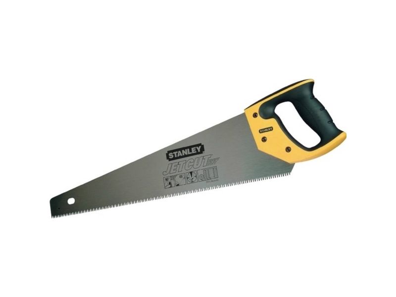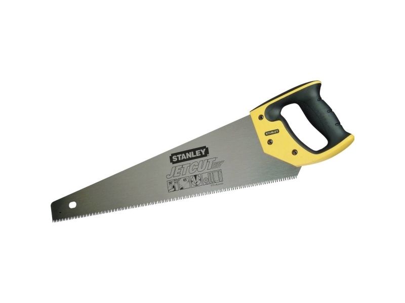 Håndsav til træ JetCut, grov 500 mm Påskruet og svejset greb af tokomponent-materiale for maksimal sikkerhed og høj komfort Forbedret 2x hardpoint-fortanding til længere levetid Aggressiv fortanding med 3 skærekanter for hurtigere og mere effektiv savning 45°- og 90°-anslag 7 tænder/inch til hurtig arbejde og høj kvalitet på emnet 0,7 mm kraftig savklinge for større stabilitet og præcision.