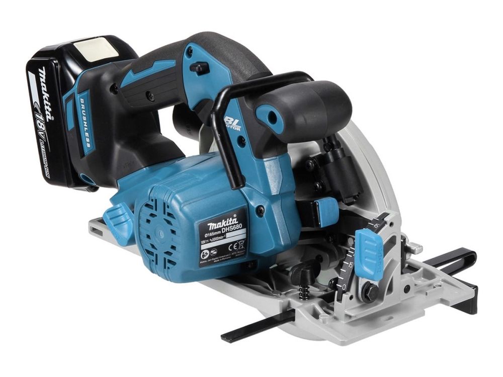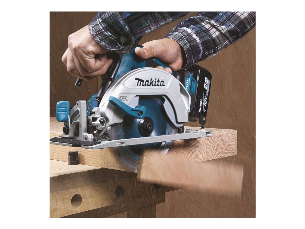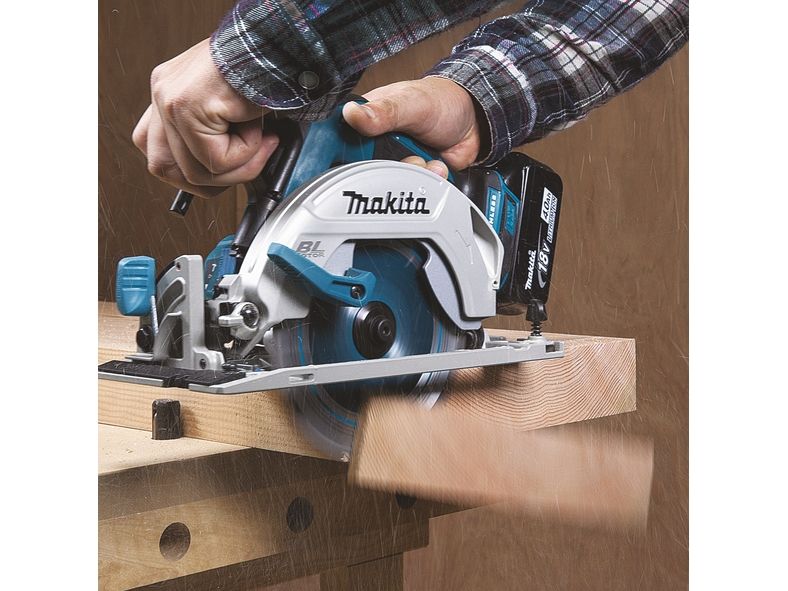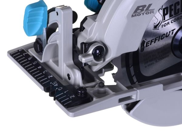 Lett og kompakt 18V batteridreven sirkelsag med høy hastighet, høy ytelse. Børsteløs motor og skjæredybde 57 mm. Sagen har blåsefunksjon i front for å blåse støv bort fra siktlinjen og LED-lys.