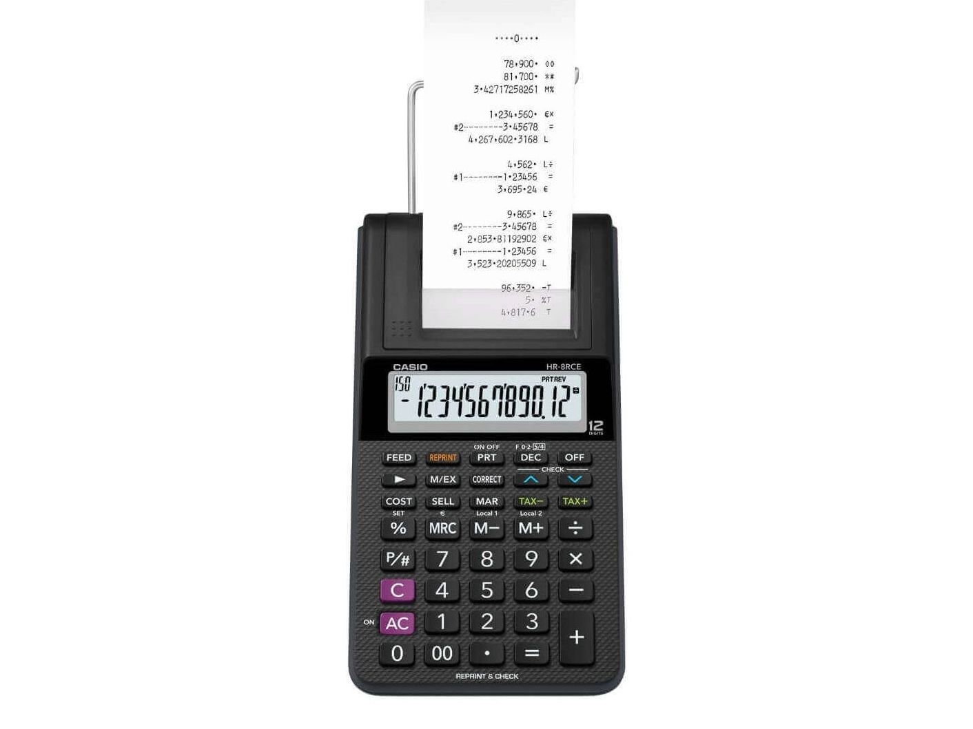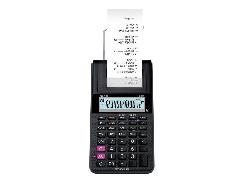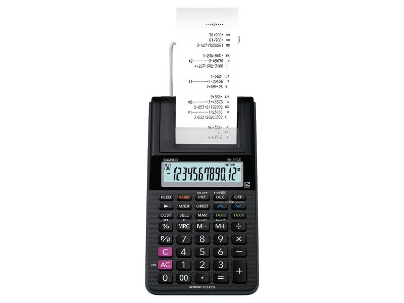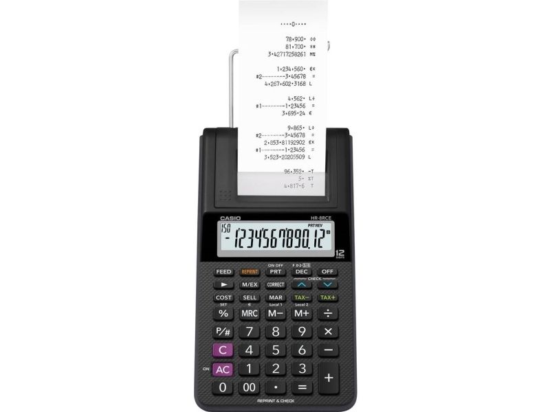 Strimmelregner Casio HR 8RCE Euro m/stort 12-cifret display