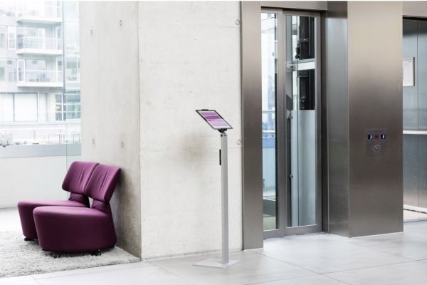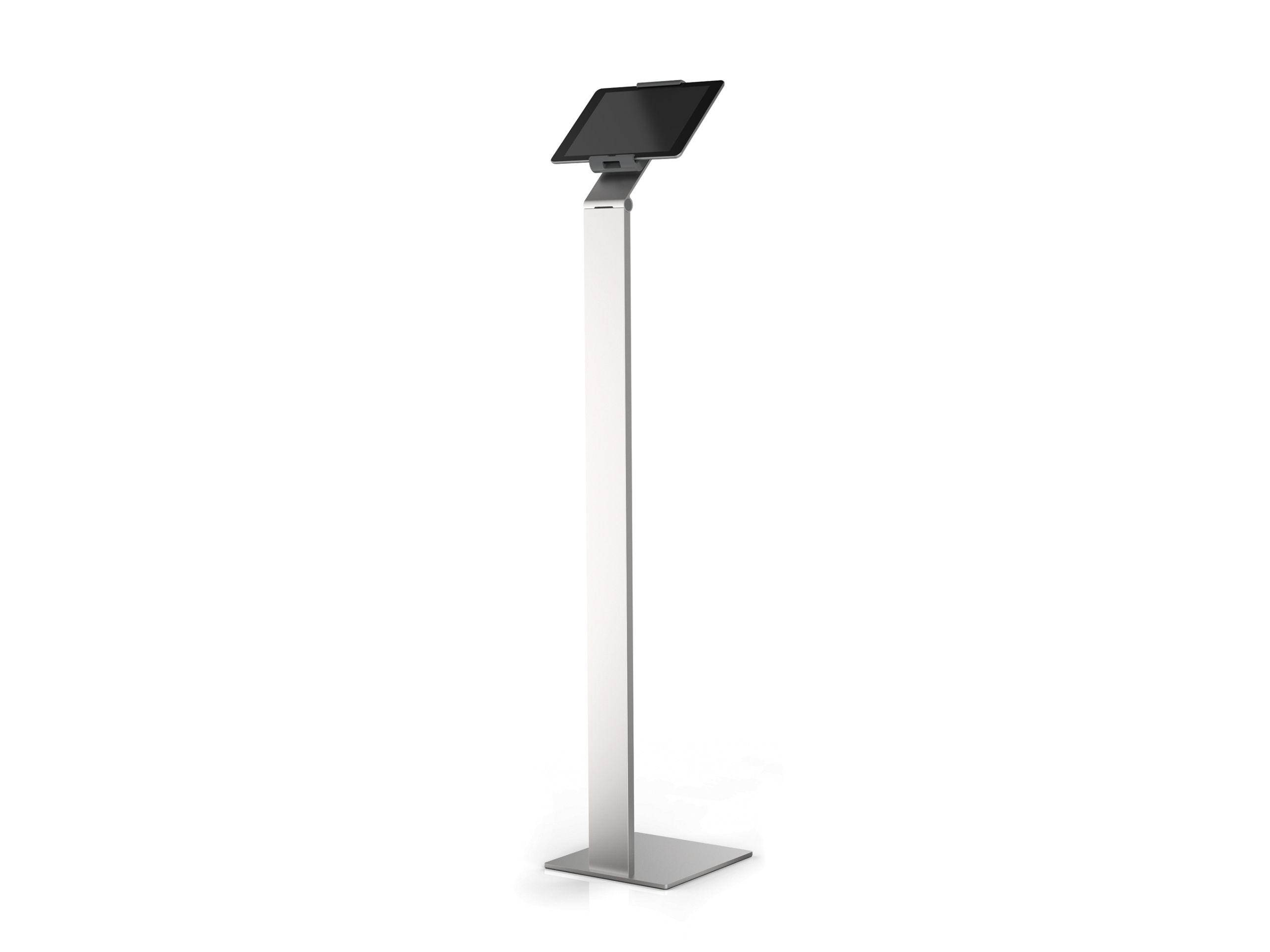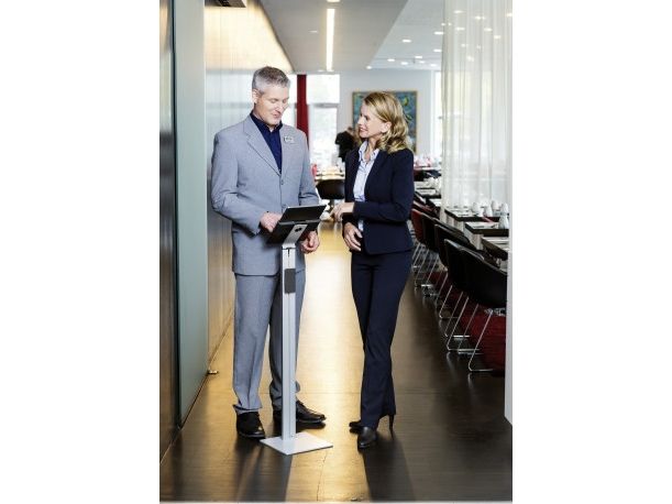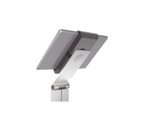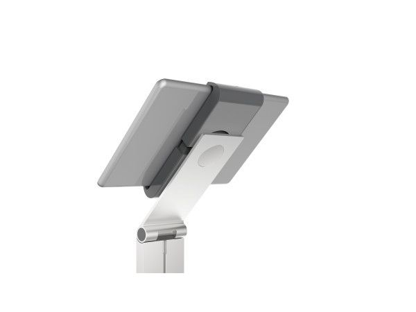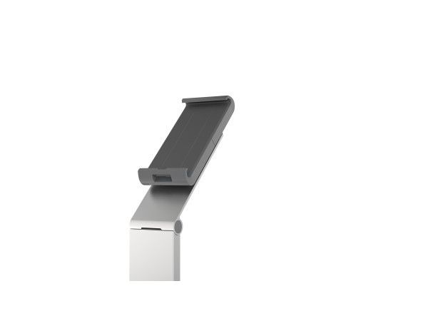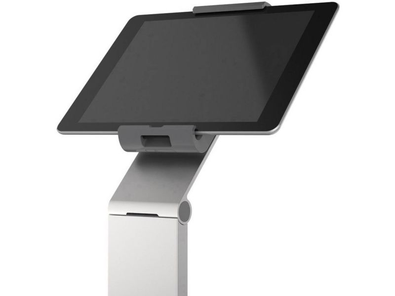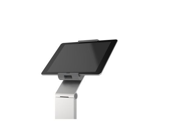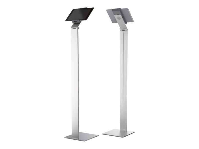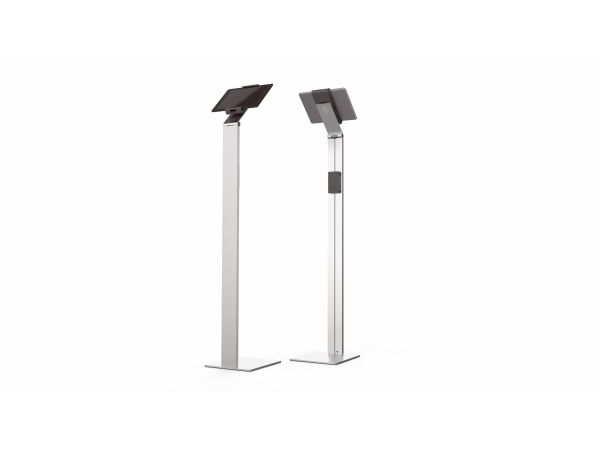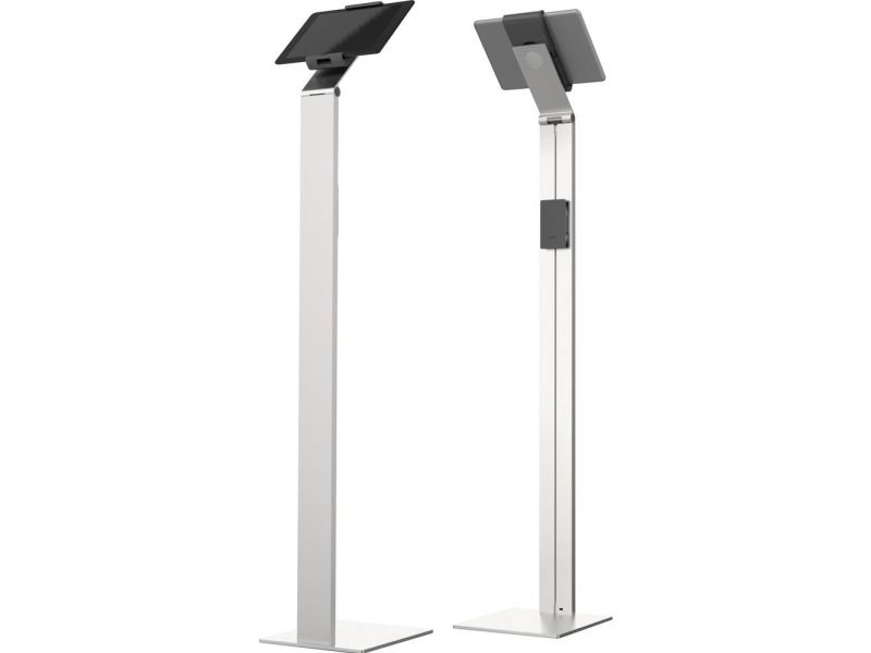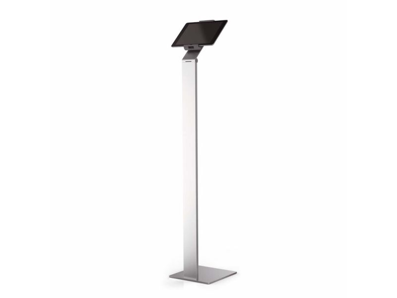 Tidsløs gulvstander med holder til tablet. Denne tablet holder er førsteklasses værktøj til præsentationer og informationsdeling i det offentlige rum, på messer, udstillinger, hoteller og restauranter. Passer til tablets fra 7 "til 13" / 160 mm til 275 mm Tabletten er let at sætte i og tage ud af holderen, der er låst med en særlig nøgle Drejelige 360 ° til brug i både stående og liggende format Opladningskablet er tilsluttet igennem en åbning i holderen Kabelholderen på bagsiden af standeren kan justeres i højden Leveres med USB-kabel Mulighed for ekstra beskyttelse mod tyveri med en kabellås (ikke inkluderet) Variabel stigningsvinkel af armen fra 0 ° til 88 ° Materialer: stål, aluminium, ABS plast Dimensioner: 270 x 1215 x 270 mm (B x H x D)Durables tabletholdere er kompatible til nedenstående 7-13 tommer tablets: