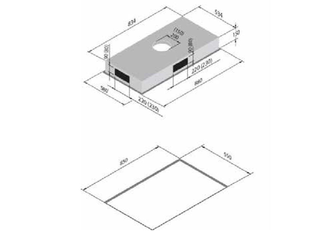 Eksklusivt emfang i et superanvendeligt design. Modellen er beregnet for montering direkte i loftet eller i en monteringsenhed som bygges op individuelt efter forholdene. Højde på kun 15 cm. Monteringen af aftrækskanaler via Front, bag, top, venstre eller højre side.