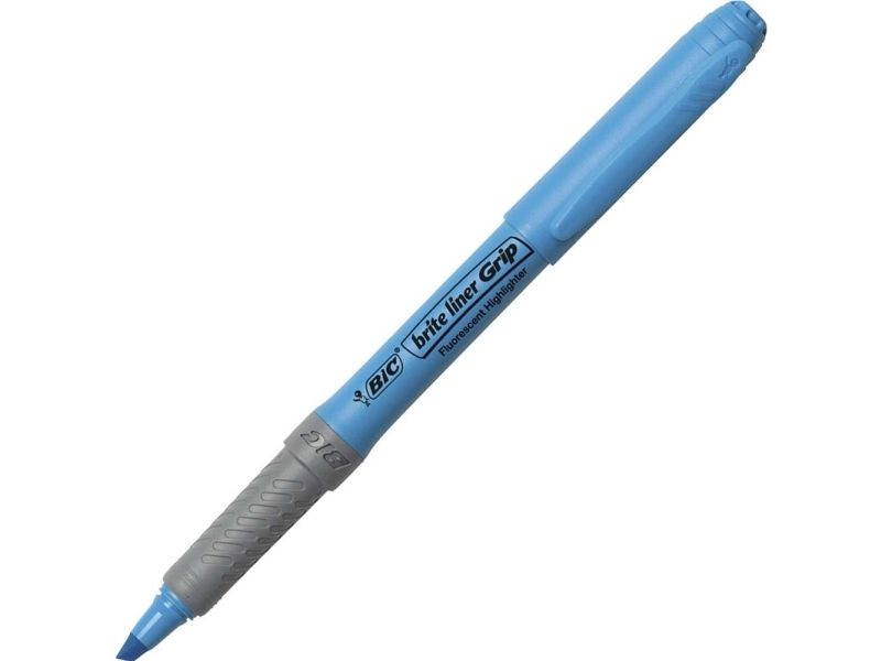 BIC brite liner Grip - Markeringspenn - fluorescerende blå - vannbasert blekk - 1.6-3.4 mm - fin og bred (en pakke 12)