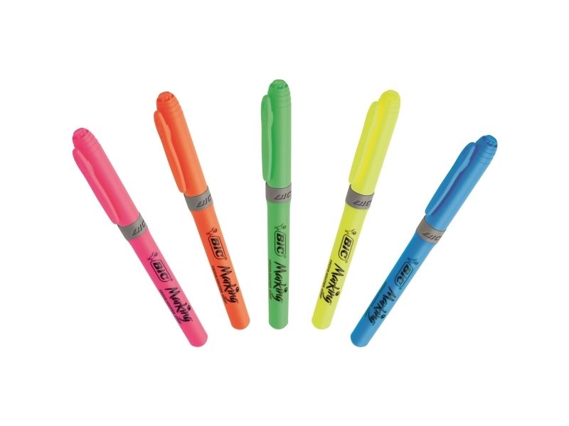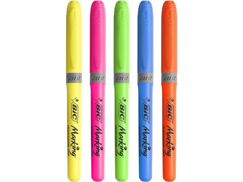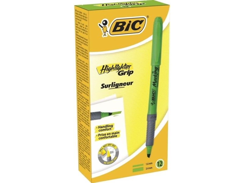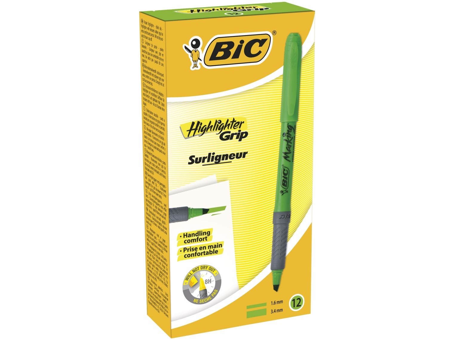 BIC brite liner Grip - Markeringspenn - fluorescerende grønn - vannbasert blekk - 1.6-3.4 mm - fin og bred (en pakke 12)