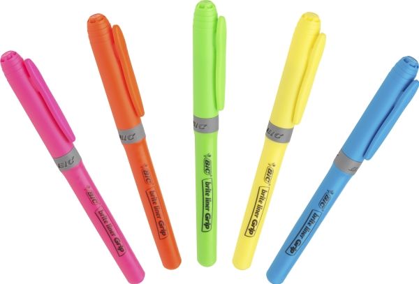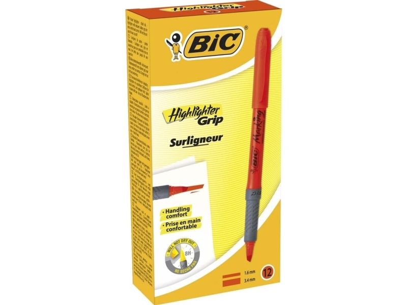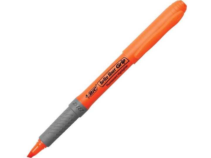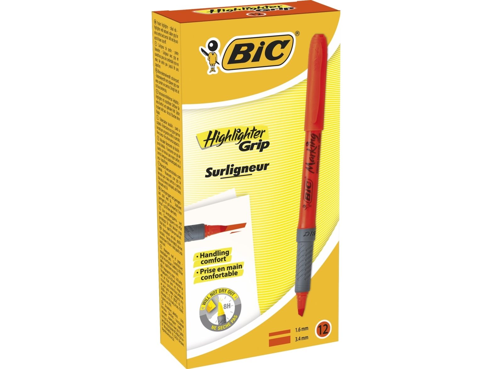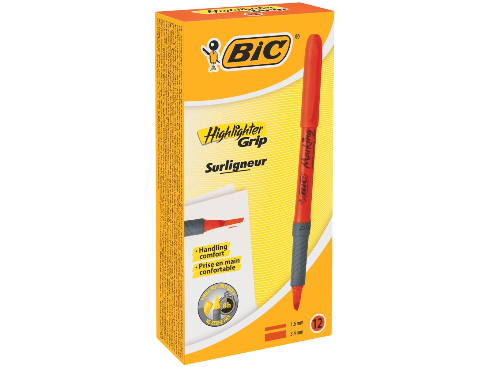 BIC brite liner Grip - Markeringspenn - fluorescerende oransje - vannbasert blekk - 1.6-3.4 mm - fin og bred (en pakke 12)