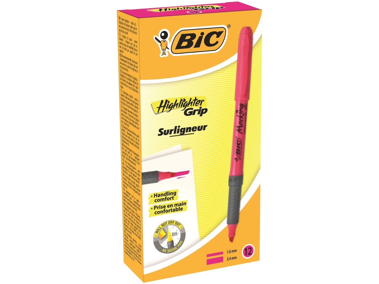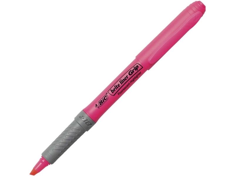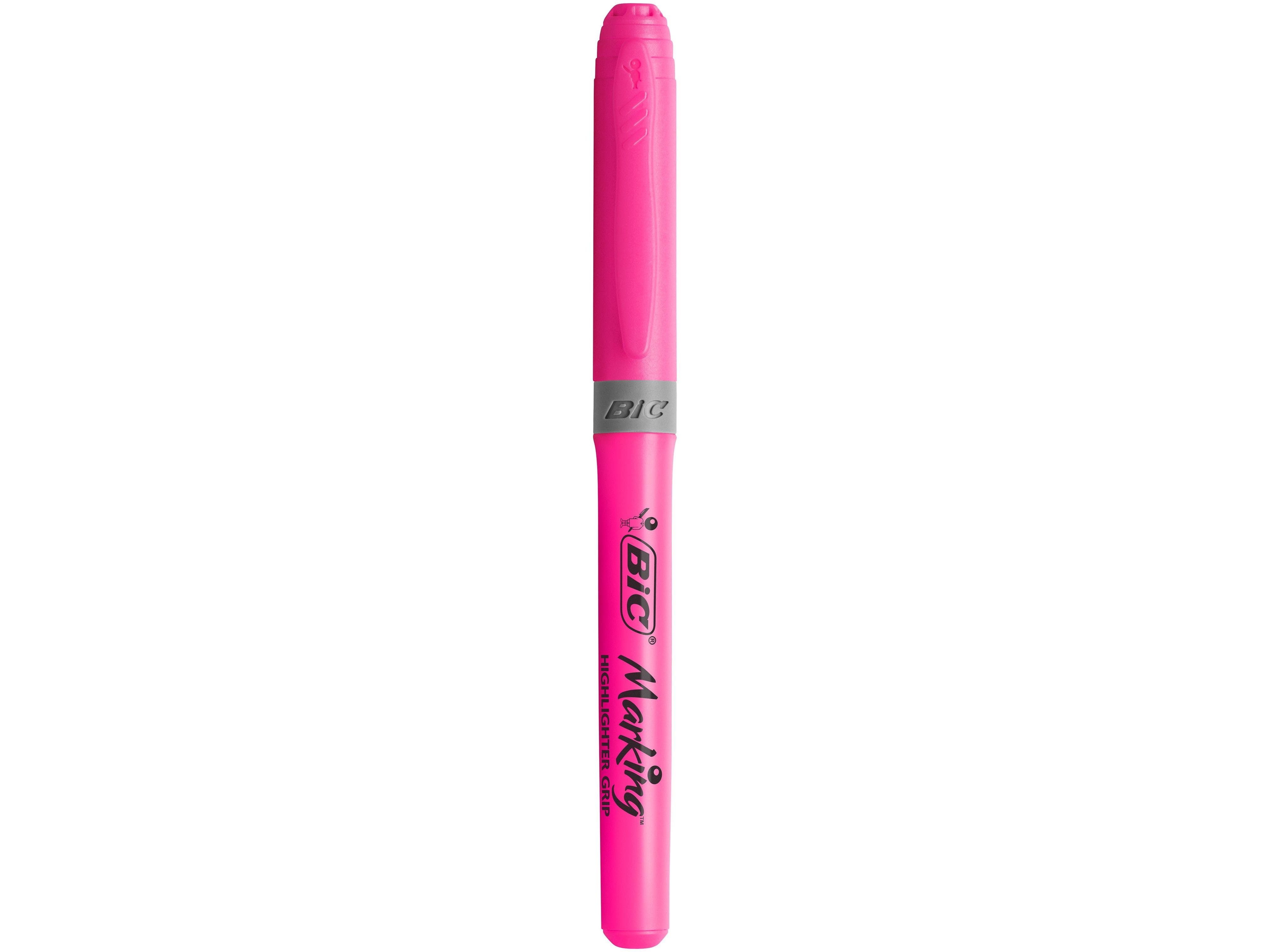 BIC brite liner Grip - Markeringspenn - fluorescerende rosa - vannbasert blekk - 1.6-3.4 mm - fin og bred (en pakke 12)