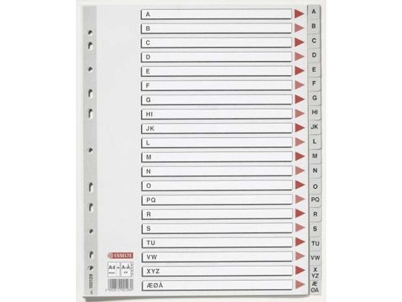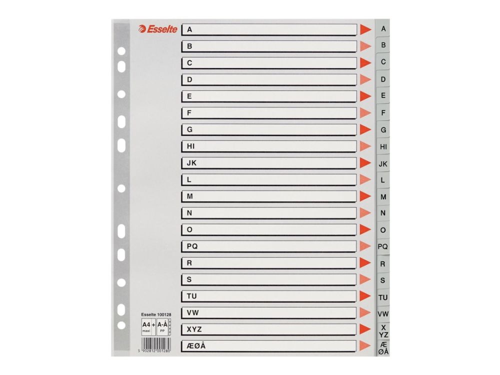 Esselte A4 maxi - Inndeler - fortrykt: A-Å - med fliker - grå