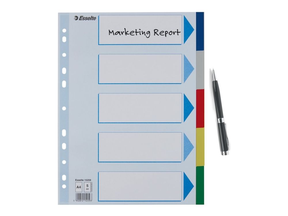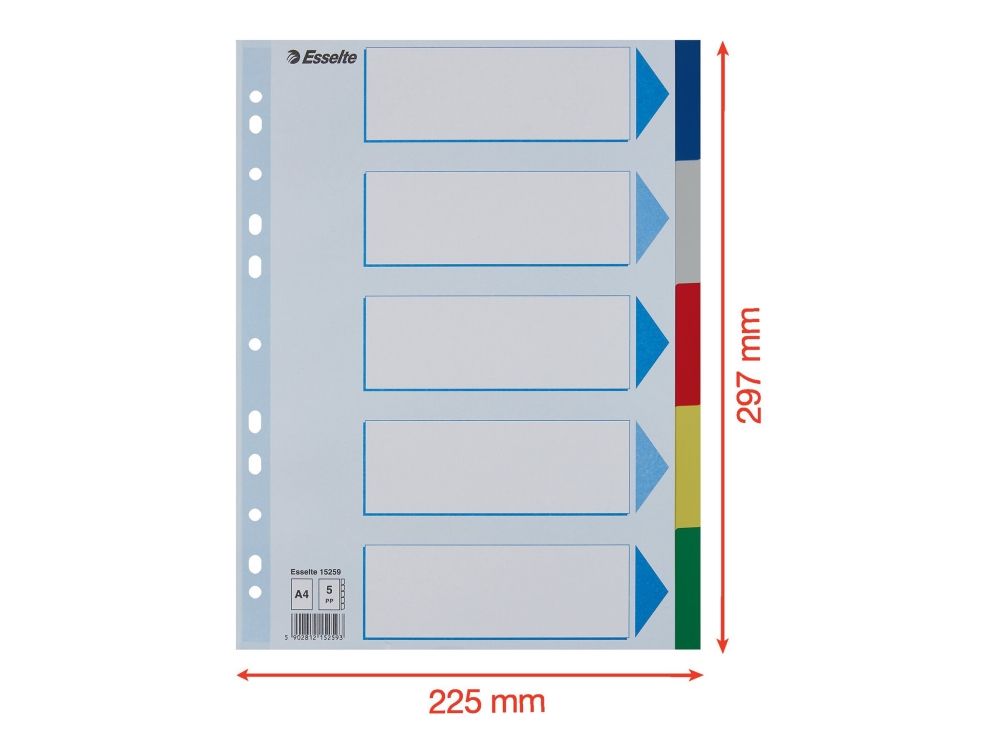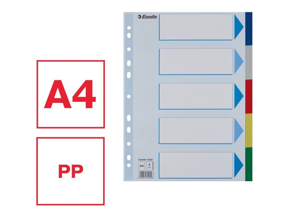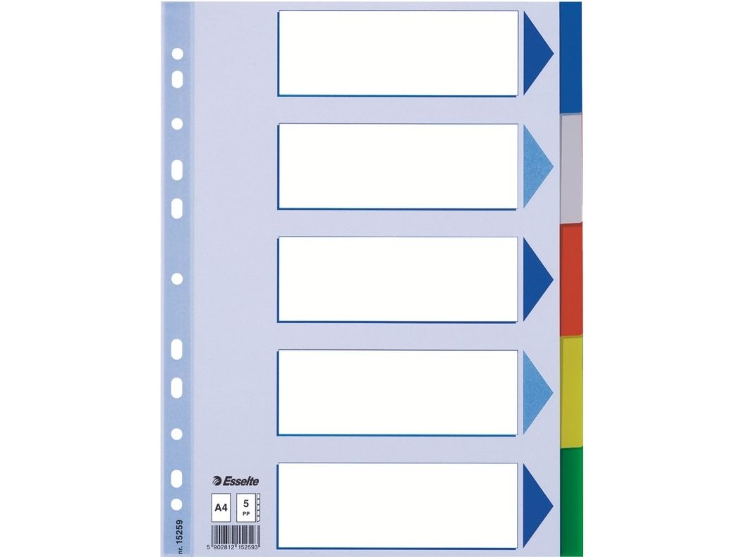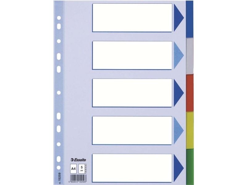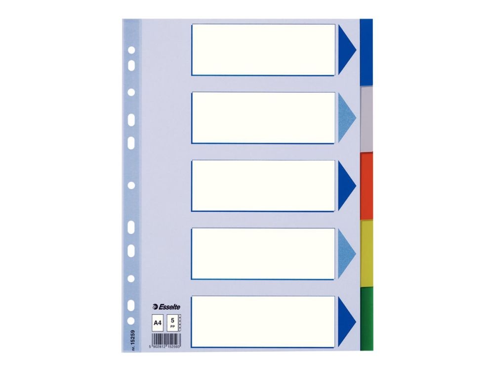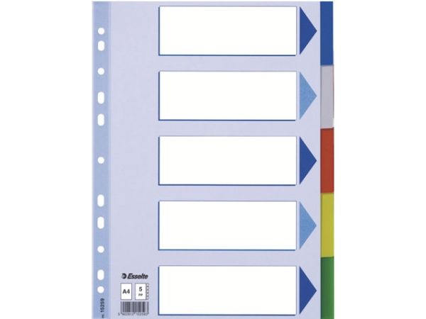 Esselte - Inndeler - 5 deler - for A4 (210 x 297 mm) - med fliker - multifarge - for P/N: 48083, 48086, 48087