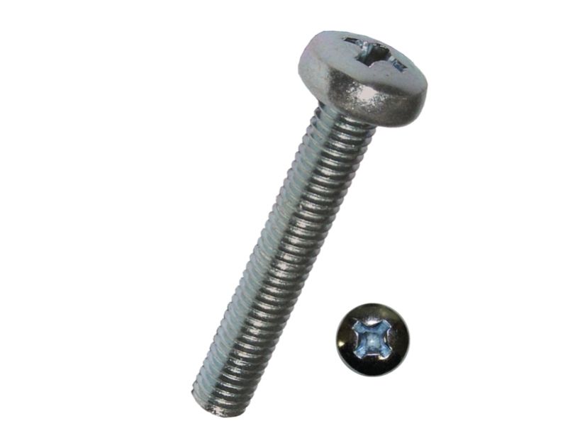 Maskinskruer DIN 7985 H med panhoved og phillips kærv, elforzinket. Kvalitet 4.8