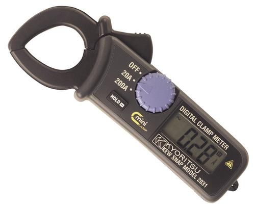 Kyoritsu K 2031 er et lille tangamperemeter i hidtil uset og meget praktisk miniformat. Instrumentet måler AC strøm og kan på grund af størrelsen anvendes næsten alle steder - også mange steder, hvor det ellers er umuligt med et normalt tangamperemeter. Instrumentet er forsynet med datahold, opfylder IEC 61010-1 KAT III 300V og leveres komplet i taske inkl. batterier og betjeningsvejledning.