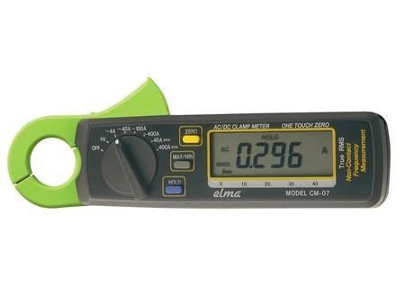 ELMA CM07 er et sand RMS tang-amperemeter i et meget handy design for nem måling af både AC og DC strømme.Instrumentet har ekstra god opløsning, 3 3/4 ciffer display samt analog bargraf.Amperemeter er forsynet med automatisk nuljustering, relativ nul, min/max-hukommelse, datahold og måler strøm AC/DC samt frekvens direkte med tangen.