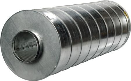 Lyddæmper SLU er opbygget af et spiralfalset rør udvendig og et perforeret rør indvendig. Mellemrummet er fyldt med mineraluld. For at undgå medrivning af mineralulden, er der anbragt en polyesterdug mellem det perforerede rør og mineralulden. Bemærk: SLU i dimension ø100 til og med ø200 mm (Ød1) er bygget med pressede endedæksler. Dette giver en længere indbygningslængde end den nominelle længde.