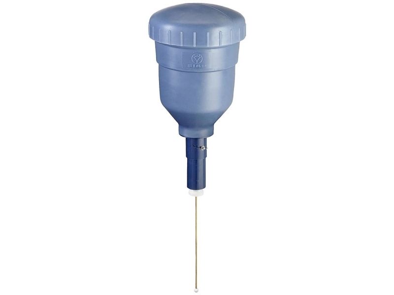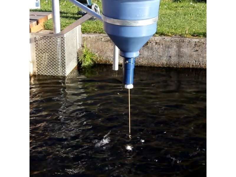 FIAP Pendulum Feeder is operated without current via adaptor with a pendular system. The discharge pipe’s mechanical turning allows for steplessly adjusting the fodder quantity. The required amount of feedingstuffs depends on fish activity. As needed, the container can be filled with the fodder required for several days (3, 10, 20, 40, or 60 kg). Under water contact with the pendulum will release the feedingstuffs (pellets in a size from 2 to 10 mm). FIAP Pendulum Feeder is thus suitable for the consistent feeding of all fish species, and is available in 5 different versions. As accessories, we offer retaining ring, swivel arm, and pipe penetration. FIAP Pendulum Feeder serves to optimize your fish farm’s feedingstuffs ratio.