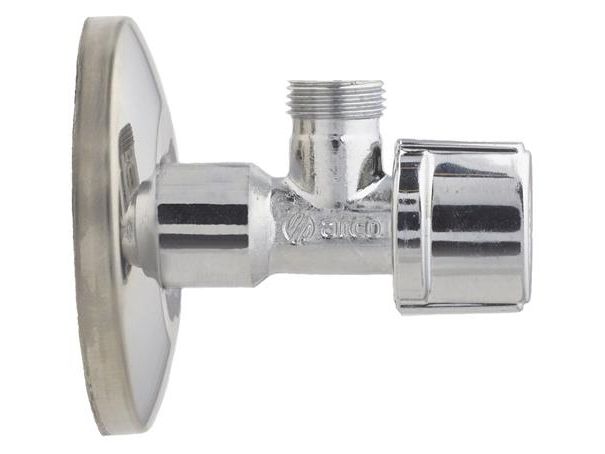 BROEN Arcofix stopventil nippel/nippel ½" X 3/8" i krom med roset Ø70mm. Leveres uden omløber til 10mm kobberrør - #744524033