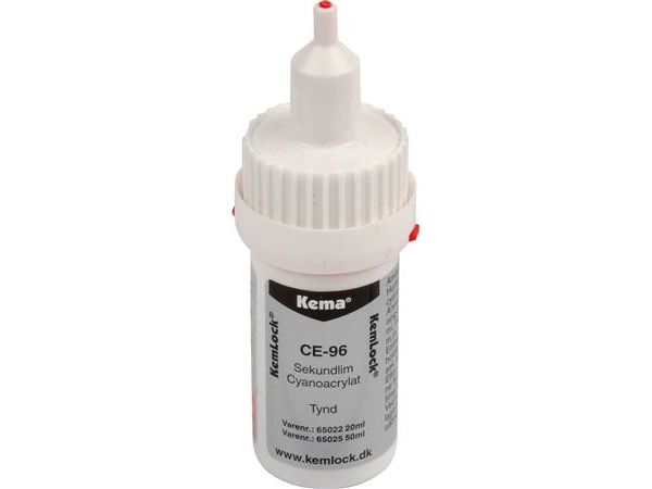CE-96 Sekundlim. Tynd lim til præcisionslimning af kontakter, relæer, trykknapper, profil pakninger, membraner, træ, læder og keramik.