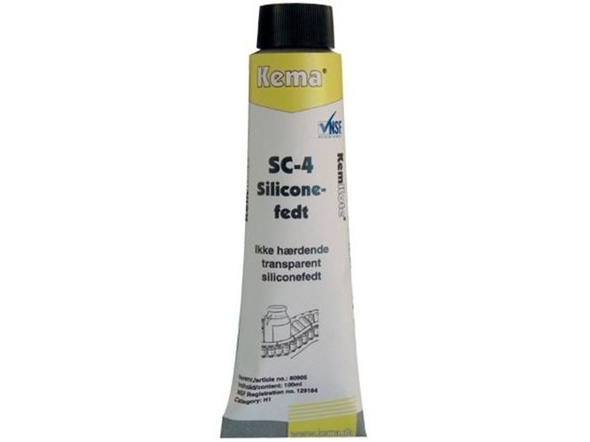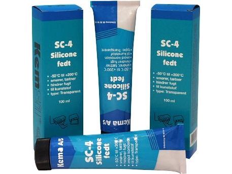 SC-4 Siliconefedt er en fedtligende siliconepasta med særdeles gode dielektriske egenskaber. Har en ensartet konsistens indenfor et bredt temperaturområde -50°C til +200°C. Lys trasparent fedt der er smags og luftfri, krakelere og størkner ikke ved ældning. Vægttab som følge af fordampning er mindre end 2% efter 24 timer ved 200°C. Klæber til tørre overflader af metal, keramik, gummi, PVC og alle former for elektriske isolationsmaterialer og har stor overflademodstand, selv under meget fugtige forhold, har fremragende modstandsevne overfor krybestrøm og corona. SC-4 har en særlig evne til at indkapsle støv, snavs og ligende, således at overfladen altid er vandafvisende og derfor velegnet til udendørs brug på f.eks. højspændingsisolatorer. Kemisk inaktiv, derfor velegnet til at beskytte og bevare fleksibiliteten hos natur- og syntetisk gummi, PVC m.m. Tætningslister af gummi kan således ikke oxydere eller frys fast. Beskytter metaloverflader mod korrosion og har et utallige anvendelsesmuligheder og anvendes idag på de mindste elektroniske enheder til de største isolatorer. SC-4 kan anvendes inden for alle industrier. Egenskaber: