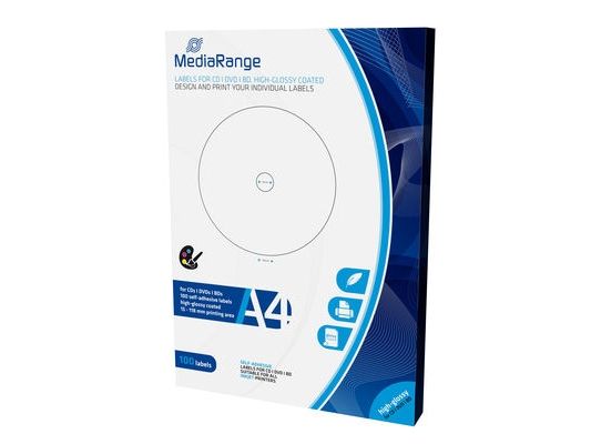 MediaRange MRINK132, Hvit, DIN A4, CD/DVD, Glans, Inkjet, 210 mm