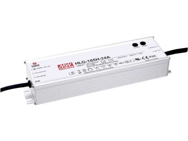 MEAN WELL HLG-185H-24B, 187,2 W, IP65, 62000 timer, -40 - 90 °C, 90 ~ 305 V, 47 - 63 Hz