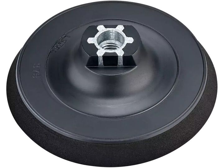 Borrelås bakskive med 12 mm. cellegummi for jevn trykkfordeling for sliping, polering eller forsegling. M14 gjenger og en diameter på 115 mm. Egnet for disse polere og vinkelslipere: L 1503 VR, L 1506 VR, L 3406 VRG, LE 14-7 125 INOX, PE 14-1 180, PE 14-2 150, PE 14-3 125, PE 150 18.0-EC, PE 150 EC 18.