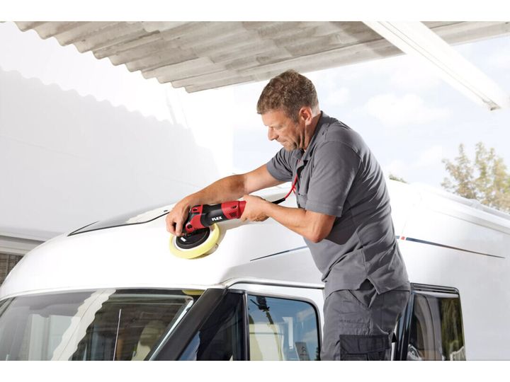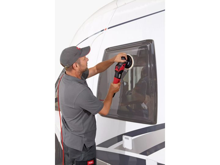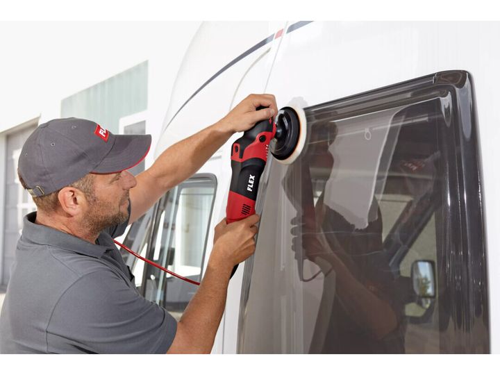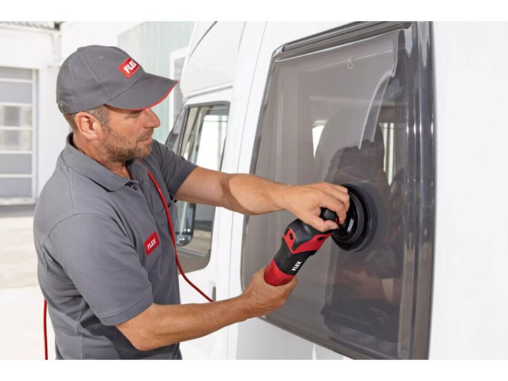 Polerer med Hohem drejningsmoment til bearbejdning af store lakoverflader VR-elektronik: Trinløst omdrejningsforudindstilling, konstant omdrejningstal ved hjælp af tachostyret regulering, overbelastningsbeskyttelse, genstartsspærre og temperaturovervågning. Kraftig 1400 watt motor med kraftig ventilator til optimal køling. Accelerationskontakt til langsom og afmålt start (starthastighed i trin 1 (250/min) og fastlåsning for kontinuerlig drift. Optimeret luftføring for den bedst mulige køleeffekt fra motor og gear. Ingen forstyrrende udsugningsluft til brugeren en ny kombination af planeter- og vinkelgear sørger for en ekstrem støjreduktion flade drevhoveder, der reducerer afstanden til overfladen. Dette gør det muligt at føre maskinen sikkert i enhver position: Ergonomisk formet med softgrip. Maskinen kan føres præcist og ligger altid behageligt og sikkert i hånden spindellås: Er ideal placeret for at undgå fejlbetjening og ikke at påvirke grebområdet med gummibeklædt flader for sikkert læg, specielt til bearbejdning af store vandrette og lodrette flader. For områderne Automotive, Maritim, Aviation