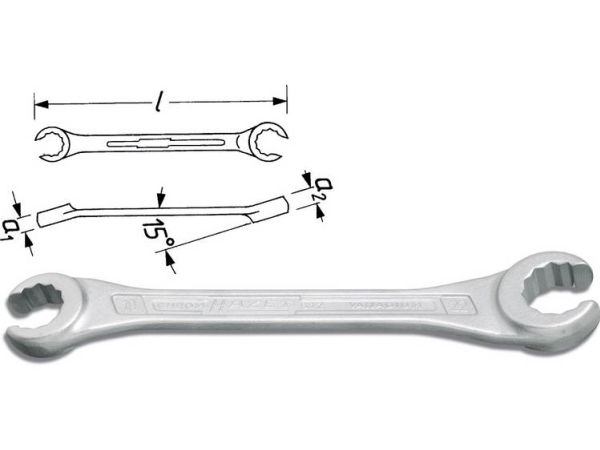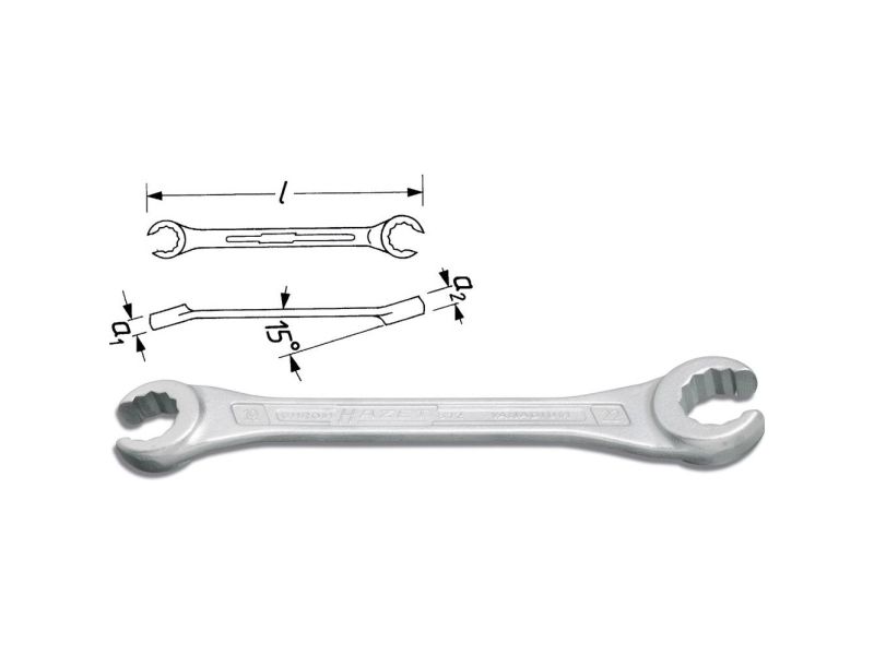 · Til rør forskruninger, omløbermøtrikker og -skruer. · Hoveder vinklet 15°. · Med 30° (dobbelt- 6KT. 15° med slids). Bemærk: til arbejde på bremserørene se HAZET 612 N. · Overflade: Forkromet. · DIN 3118 Made in Germany